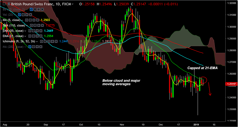 - The pair trades below daily cloud and major moving averages, bias still bearish.