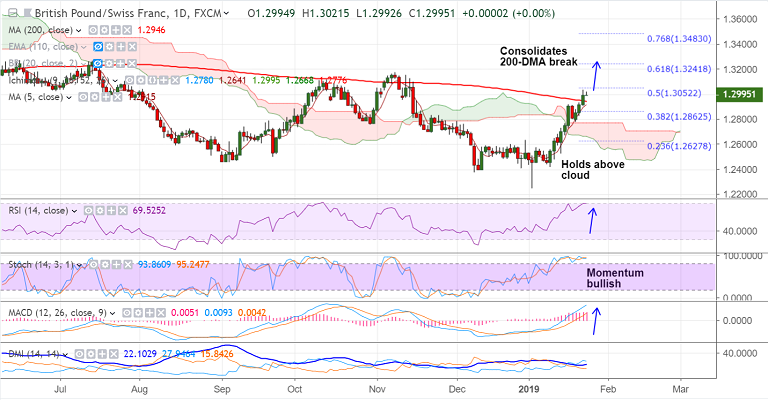 - The pair is extending consolidation after break above 200-DMA in previous session.