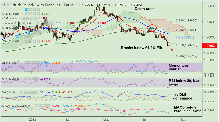 - GBP/CHF hits new 10-month lows at 1.2768, before paring some losses to currently trade at 1.2786.