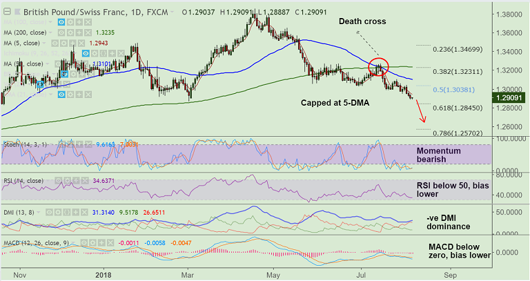 - GBP/CHF is extending grind lower. 'Death Cross' formation on daily charts reinforces weakness.