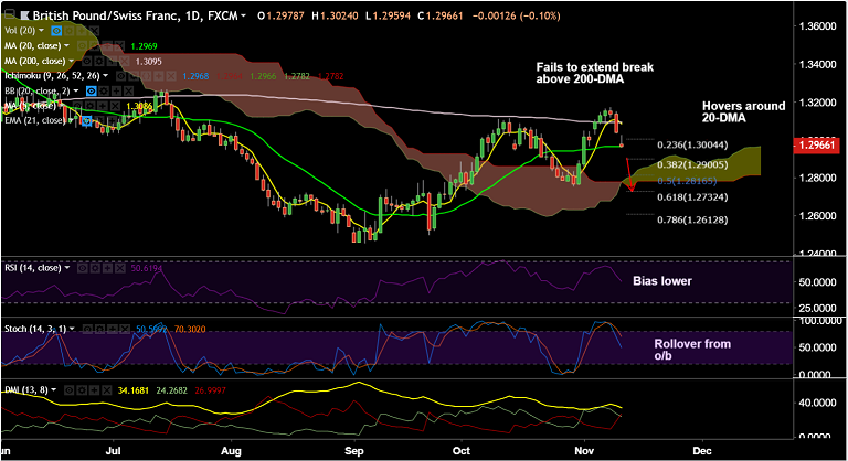 Recommendation: Good to go short on decisive break below 20-DMA, SL: 1.3090, TP: 1.29/ 1.2820