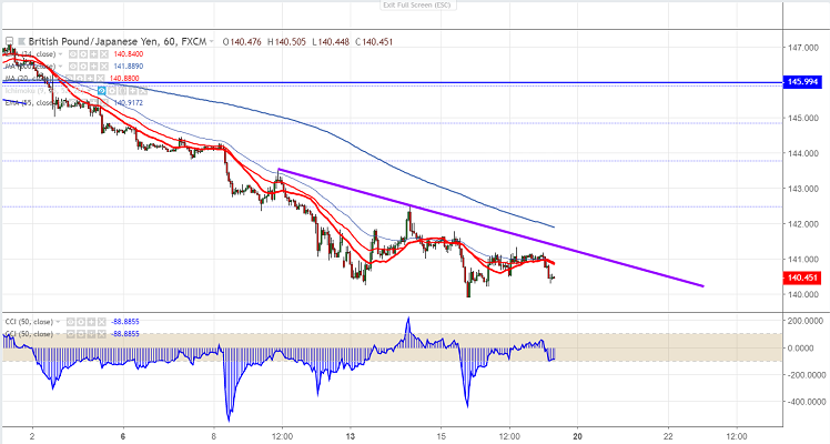 The near term resistance is around 141.35 and any break above targets 141.95 (200- H MA)/142.47. Any violation above 142.47 will take the pair to next level till 143/143.59.
