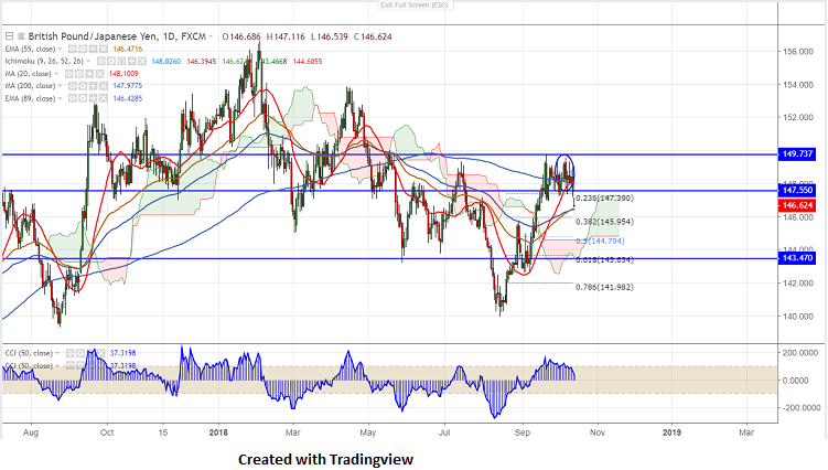 It is good to sell on rallies around 147.30-35 with SL around 148.35 for the TP of 145.