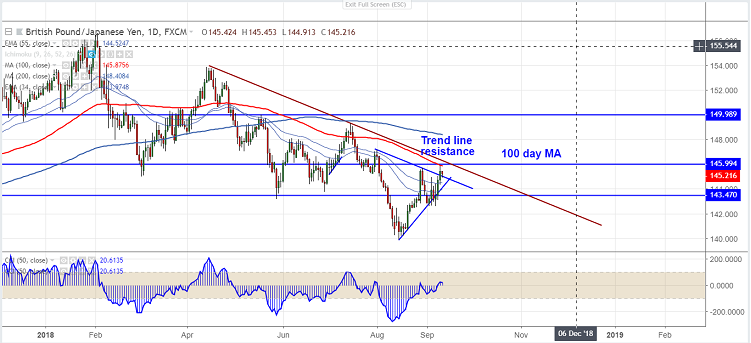 On the lower side, 144.50 (55- day EMA) will be acting as near term support and any break below targets 144.07/143 in the short term.