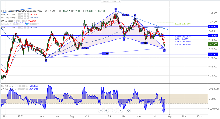 On the higher side, near term resistance is around 142.47 (23.6% fib) and any break above will take the pair to next level till 143/143.60 (7- day MA)/144.43 (10- day MA).