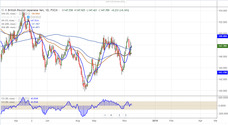 GBP/JPY was trading highly volatile yesterday on Brexit headlines kept coming. GBPUSD has shown 150 pips movement both on higher and lower side. GBP recovered sharply after hitting low of 146.32 level. The cabinet has approved the Brexit deal but fears that the DUP will reject the Brexit deal draft is putting pressure on GBP at higher levels.Brexit optimism is supporting prices of Pound sterling. The pair hits intraday high of 147.92 and shown a minor decline from that level. It is currently trading around 147.79.