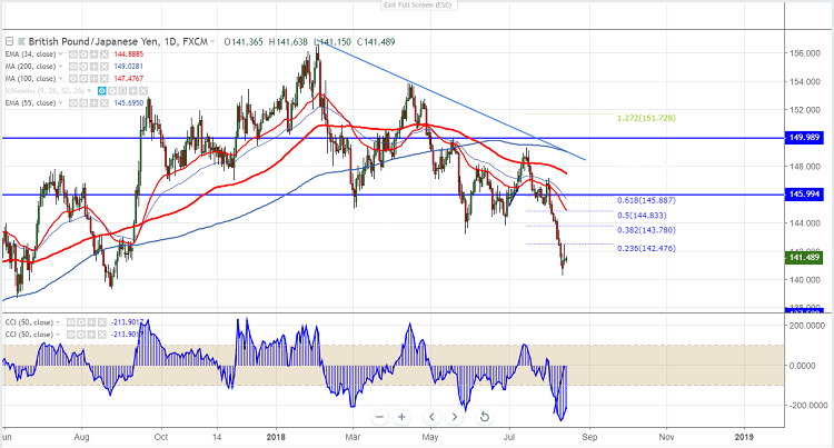 On the higher side, near term resistance is around 142.47 (23.6% fib) and any break above will take the pair to next level till 143/143.60 (7- day MA)/144.43 (10- day MA).