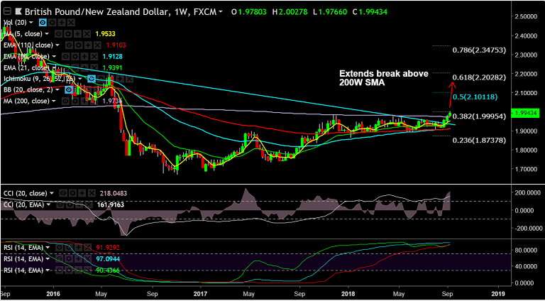 - GBP/NZD built on its bullish trajectory after break above 200W SMA, bias higher.