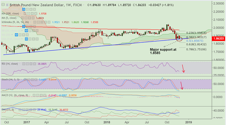 - GBP/NZD is extending weakness for the 4th straight session, trades 0.08% lower on the day at 1.8618 at the time of writing.