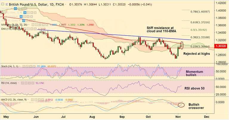 Support levels - 1.2960 (nearly converged 5-DMA and 21-EMA), 1.2695 (Oct 30 low)