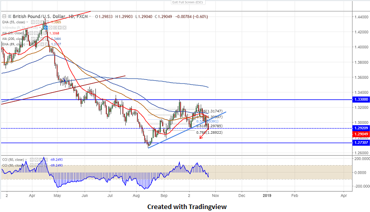 The minor jump can be seen only above 1.3050 and any break above targets 1.3070 (55-day EMA)/1.3125.