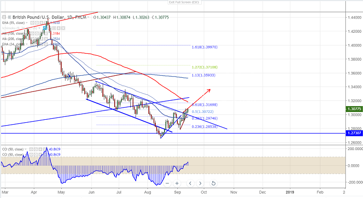 GBPUSD has shown a good recovery of more than 100 pips from the low of 1.29795 made yesterday. Bank of England has kept its rate unchanged unanimously at 0.75% as widely expected. Asset purchase target unchanged at GBP 435B. BOE has mentioned that there are indications of “greater than uncertainty “ regarding Brexit.