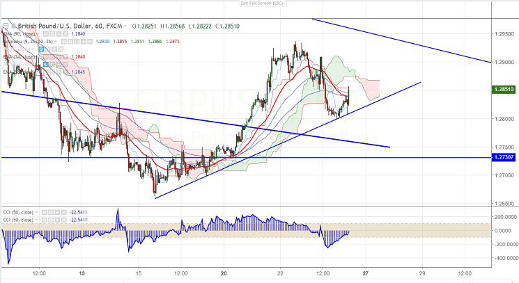 GBPUSD is trading weak for 3rd consecutive days after hitting high of 1.29365. The pair has lost more than 100 pips from the high. It is currently trading around 1.28312.