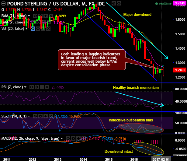 Following another test of 1.2400-1.2345 support, GBPUSD rallied sharply yesterday afternoon to retrace the post-retail sales decline. On the flip side, from last three and a half months, the underlying pair is stuck in the range of 1.2775 and 1.1987 levels.