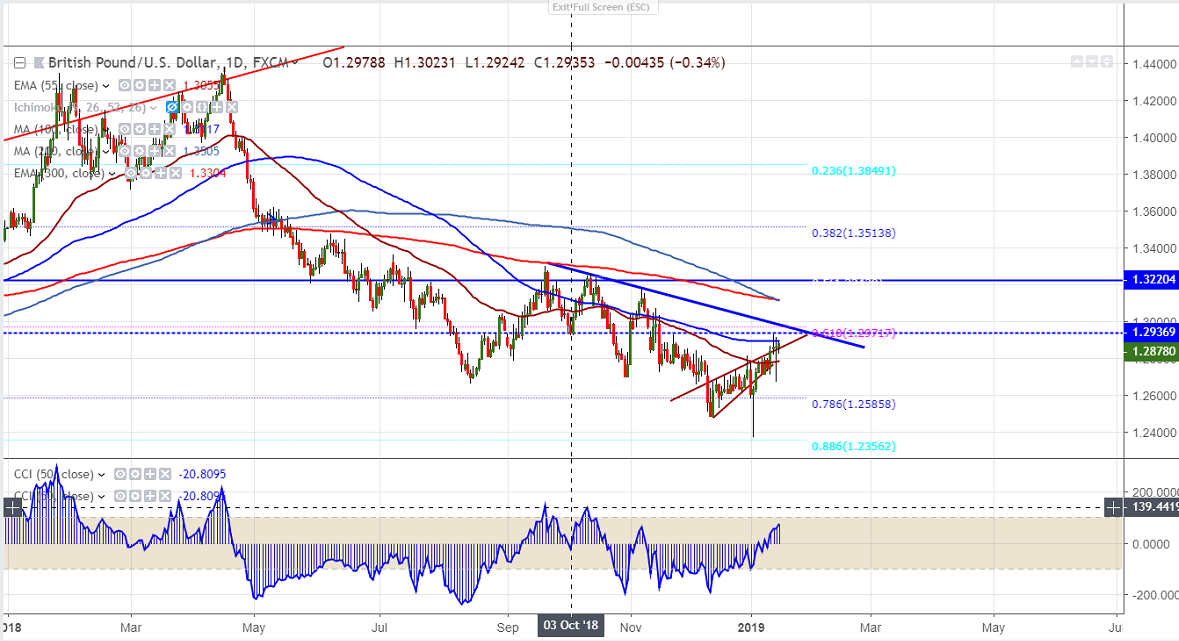 GBPUSD was trading highly volatile yesterday and showing more than 200 point movement on either direction on account of Brexit vote in Parliament. The House of Common rejected May Brexit deal 432 to 200 was more severe than anticipated and this has opened possibility of a no- deal Brexit. Markets eye no-confidence vote at 7 PM GMT for further direction. Theresa May is expected to win no-confidence vote as most of opposition is willing to support UK PM to avoid general elections. The pair hits intraday high of 1.28957 and is currently trading around 1.28624.