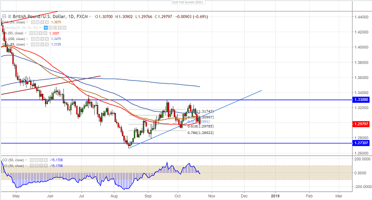 GBPUSD is trading lower and has lost more 100 pips from the high of 1.3092 on Brexit uncertainty. The pair hits low of 1.29813 at the time of writing. It is currently trading around 1.29815.