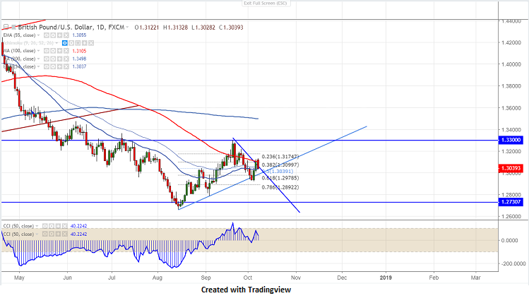 UK Brexit secretary will be travelling to Brussels for next round of Brexit negotiations and Brexit summit to held on Oct 17th 2018. Pound sterling is expected to trade highly volatile till Brexit deal reached.
