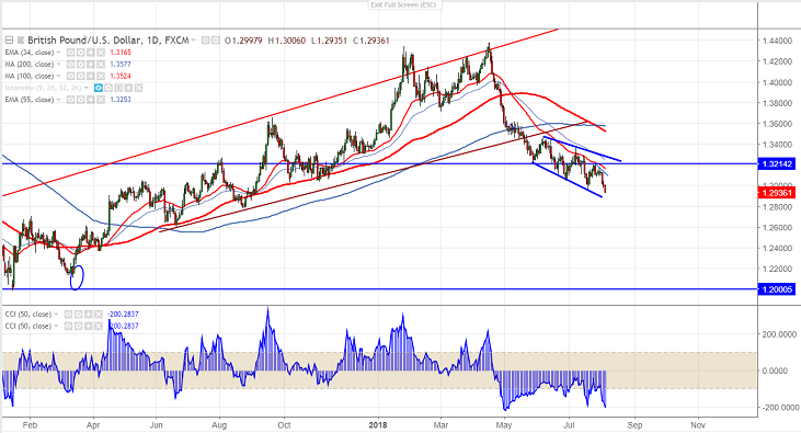 GBP/USD is trading weak for third consecutive day.The pair has lost more than 300 pips in previous week after weak UK economic data and dovish rate hike by BOE. The pair hits low of 1.2955 for the day and is currently trading around 1.29554.