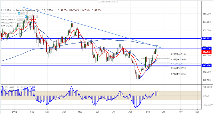 The near term resistance is around 148.30 and any daily close above will take the pair to next level till 149.31/150.