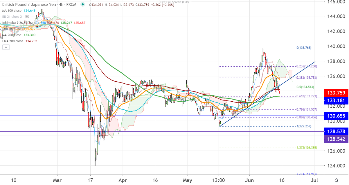 GBPJPY continues to trade lower after a minor recovery till 136.04. The decline was mainly due to massive sell-off in Pound sterling, especially against USD. The pair lost more than 300 pips on fear of the second wave of the corona.