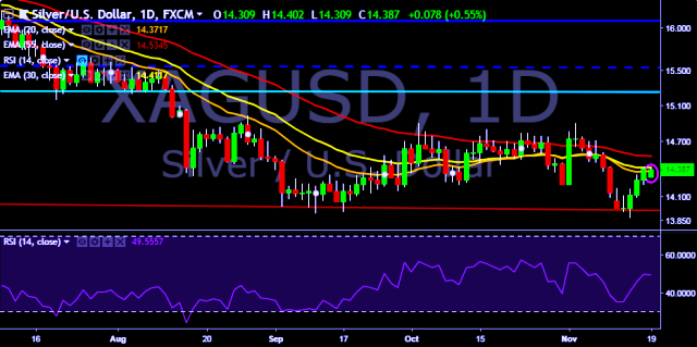 We prefer to take long position on XAG/USD only above $14.42, stop loss $14.27 and target of $14.57.