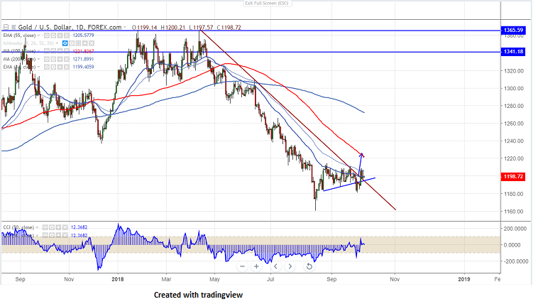 The near term support is around $1180 and any violation below will drag the commodity down till $1170/$11620.