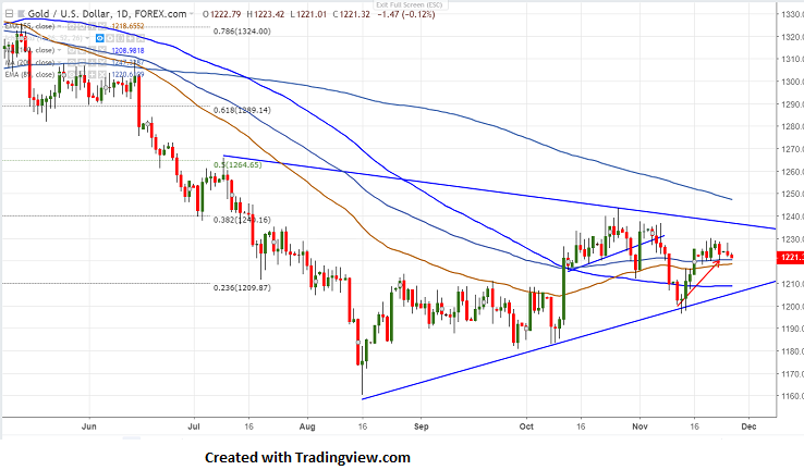 The yellow metal has lost almost $10 from high of $1230.13.On the higher side, major resistance is around $1230 and any convincing break above $1230 will take the commodity till $1236. It should break above $1243 (Oct 26th 2018 high) for bullish continuation.