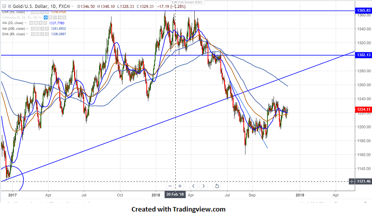 Gold is trading flat after a good recovery of more than $10 easing US 10 year bond yield.It is currently trading around $1224.85.