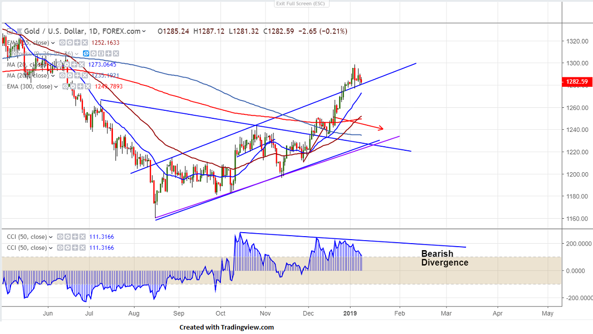 Gold is trading weak for past two trading session and lost nearly $22 from high of $1298 on easing trade war tension between US and China and recovering global stock prices. It is currently trading around $1281.59.