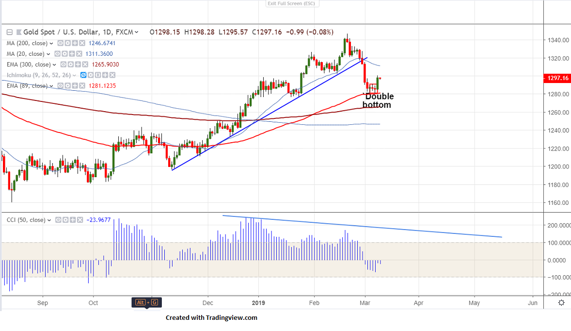 On the higher side, yellow metal is facing near term resistance around $1300 and break above will take the gold to next level till $1311.80 (20- day MA)/$1316.The yellow metal should break above $1320 for further bullishness.