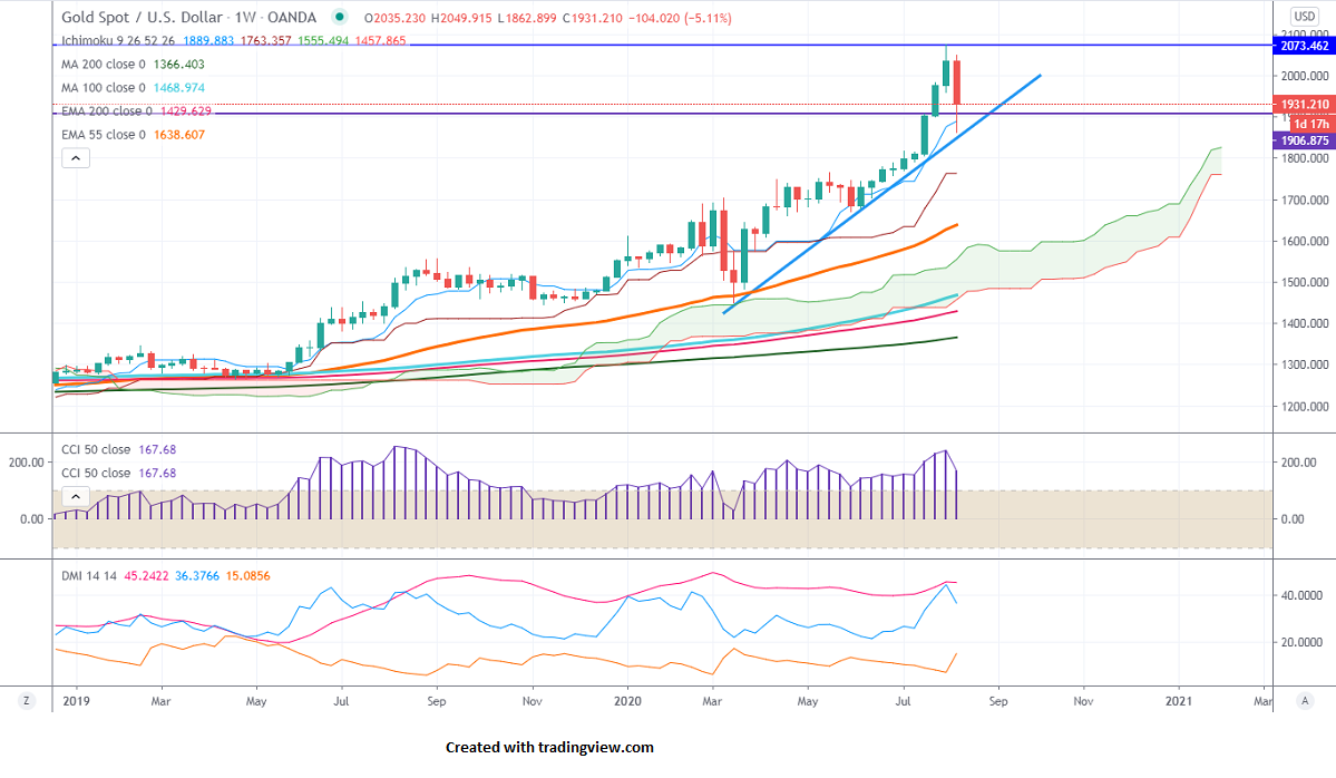 The immediate support is around $1860, any indicative break below targets $1846/$1825/$1800. The near term resistance is at $1950, the violation above will take the commodity to next level $1968/$2000.