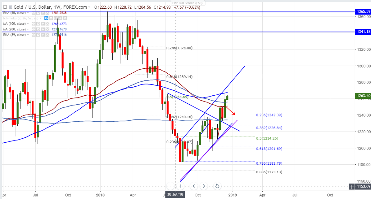 The near term support is around $1255 (89-W EMA) and any violation below will drag the commodity down till $1242 (23.6% fib)/$1234 (200- W MA).