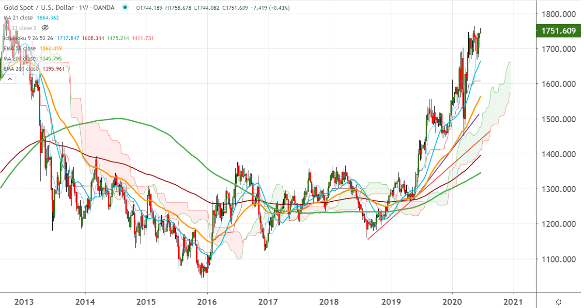 Gold showed a massive recovery of more than $50 from the previous week's low of $1704. The increase in the number of new coronavirus cases, especially in the U.S has increased demand for Safe-haven assets like gold, yen. The U.S has reported more than 30000 new cases on Friday and Saturday. The centers for Disease Control and Prevention forecasts between 129000 and 145000 COVID- 19 deaths by Jul.