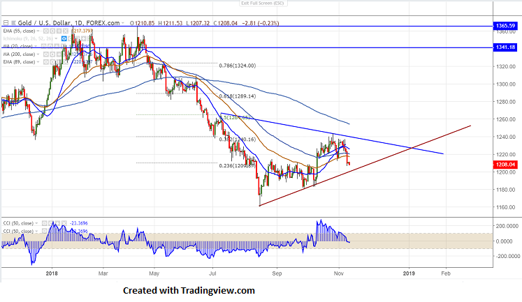The near term support is around $1207 and any violation below will drag the commodity down till $1200/$1190.