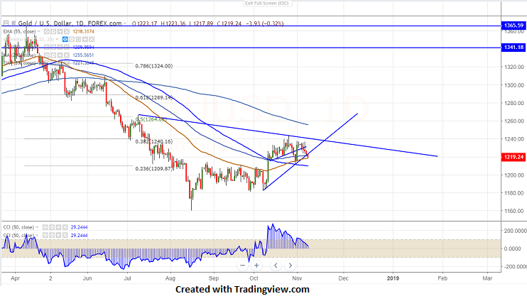The near term support is around $1218 (55- day EMA) and any violation below will drag the commodity down till $1212/$1200.
