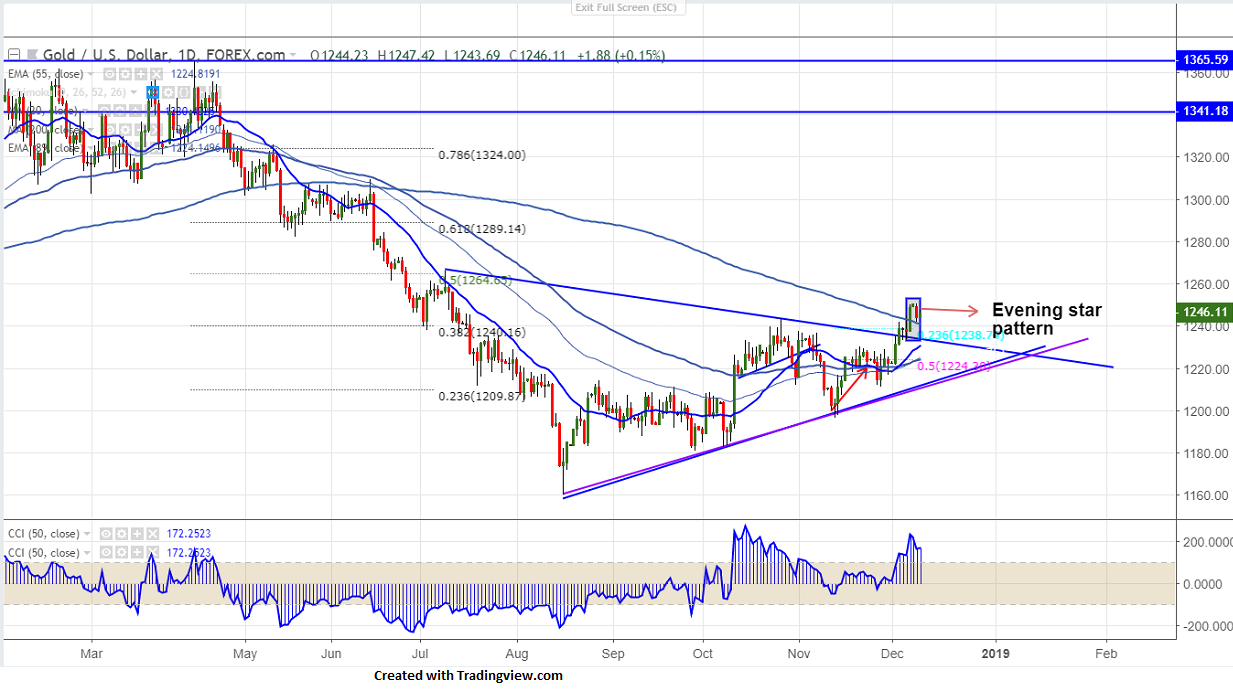 The near term support is around $1241 (200- day MA) and any break below confirms minor weakness and a decline till $1228/$1224 (55- day EMA) is possible.