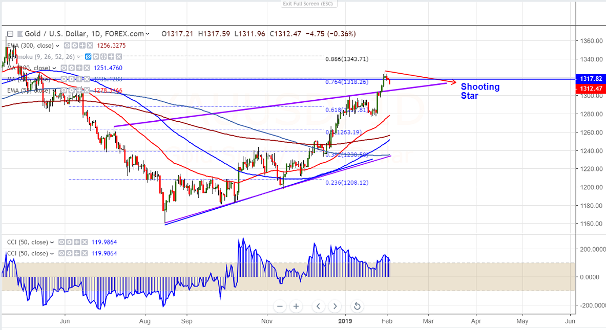 Gold has halted its 2 week of winning streak and declined more than $20. The yellow metal jumped more $50 in month of Jan on account of dovish Fed and global uncertainty.