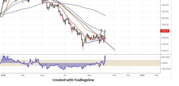 On the higher side, any break above $1230 will take the commodity till $1234/$1240.It should close above $1265 for bullish continuation.