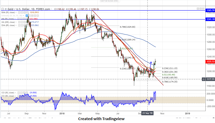 On the higher side, any break above $1230 will take the commodity till $1234/$1240.It should close above $1265 for bullish continuation.
