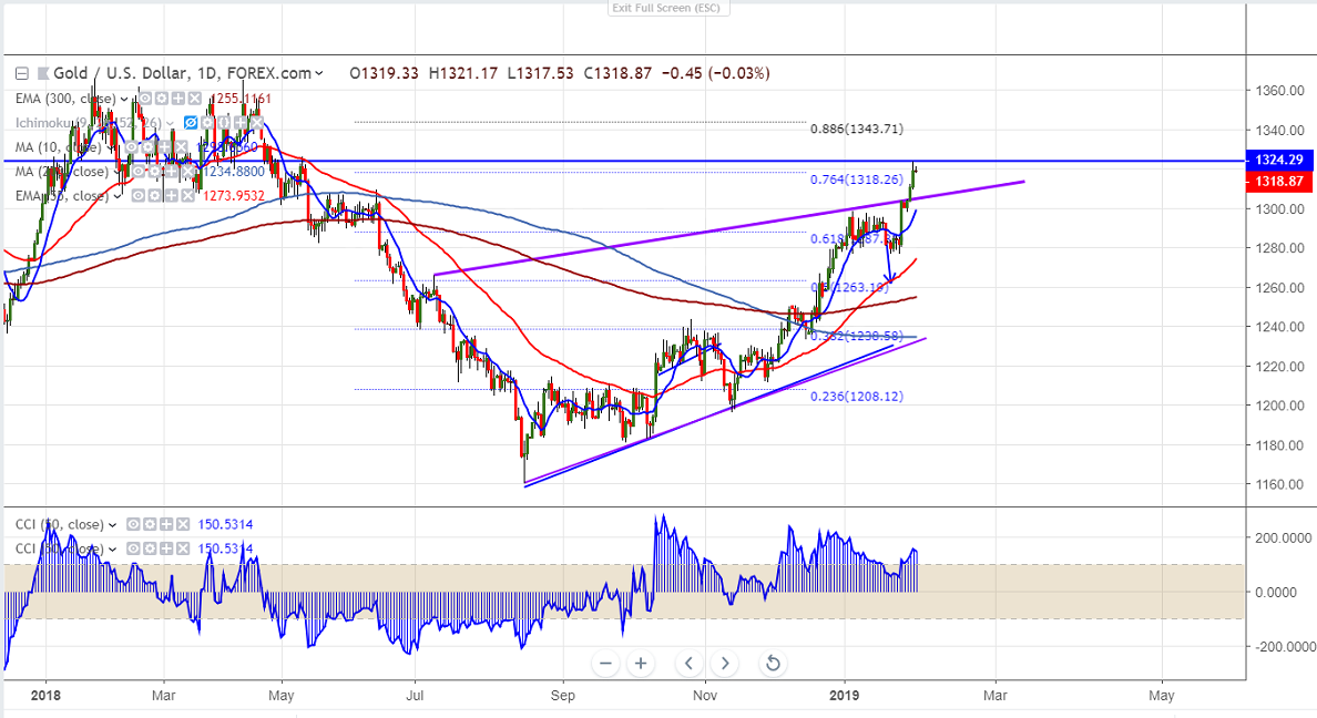 Gold continues to trade higher and jumped more than $10.On the higher side, yellow metal is facing resistance around $1325 and break above will take the gold to next level till $1350$1360.