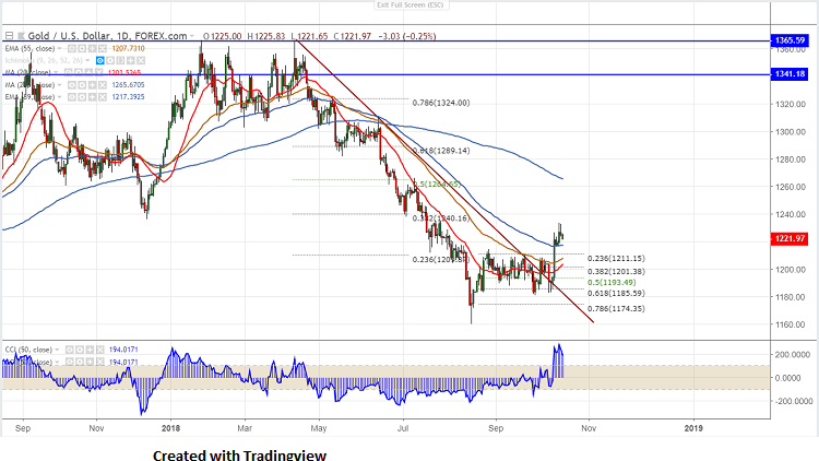 On the higher side, any break above $1234 will take the commodity till$1240/$1250.It should close above $1265 for bullish continuation.