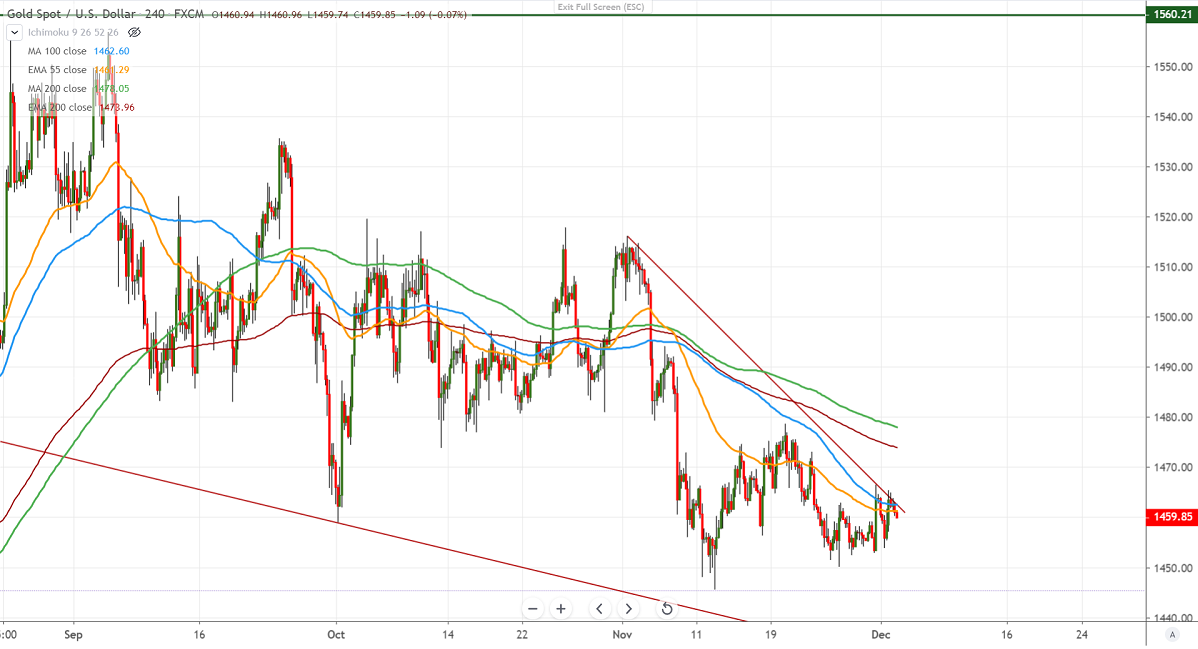 The near-term resistance is at $1480, any indicative break above targets $1500/$1525.