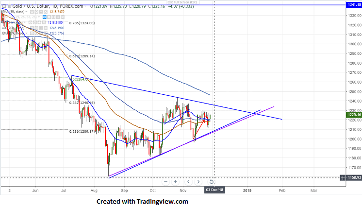 The yellow metal has regained more than $10 from low of $1211.On the higher side, major resistance is around $1230 and any convincing break above $1230 will take the commodity till $1236. It should break above $1243 (Oct 26th 2018 high) for bullish continuation.