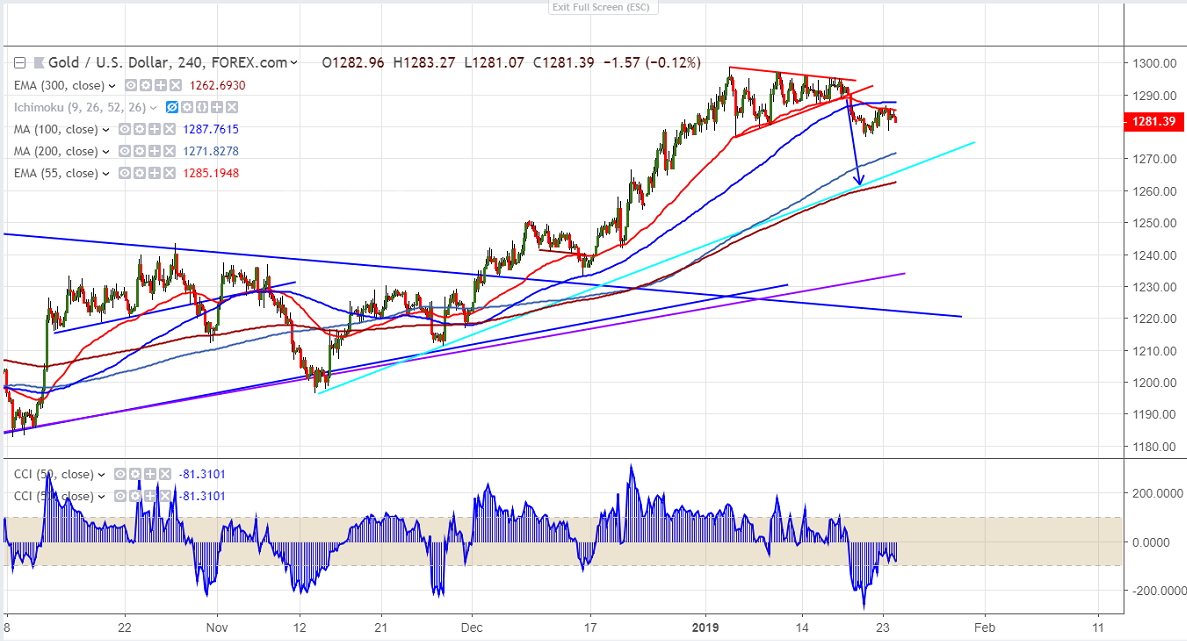 Gold is consolidating after a minor recovery of nearly $10 from low of $1276. The yellow metal has lost its shine due to easing US-China trade tension but Brexit uncertainty and global growth concerns supporting gold at lower levels. It is currently trading around $1281.80.