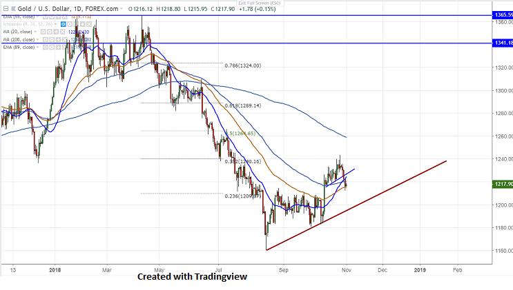 It is good to sell on rallies around $1220-22 with SL around $1228 for the TP of $1200.