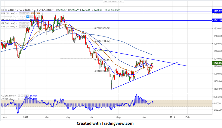 The near term support is around $1217 (55 day EMA) and any violation below will drag the commodity down till $1209/$1200.