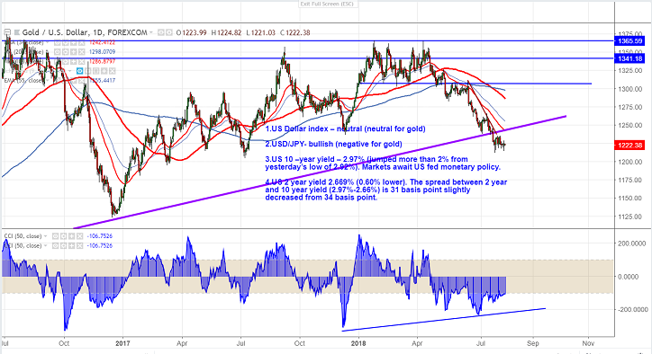 - US Dollar index – neutral (neutral for gold)- DXY has shown a minor jump of more than 40 pips from the low of 94.16. DXY is trading in narrow range and market awaits US fed meeting for further direction.The index has formed temporary top around 95.65. It is currently trading around 94.59.