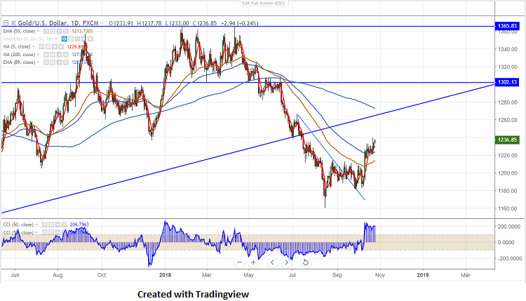 Gold is trading steady above $1230 level despite strong USD. The huge sell-off in global stock market has increased demand for yellow metal.