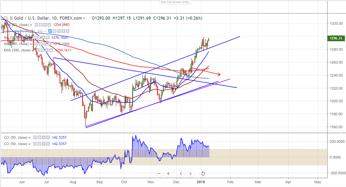 On the higher side, yellow metal is facing strong psychological resistance around $1300 and break above will take the gold to next level till $1320.