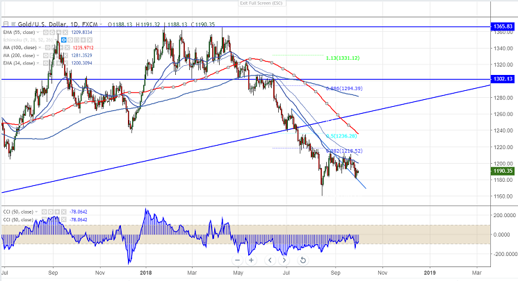 The near term support is around $1180 and any violation below will drag the commodity down till $1170/$11620.